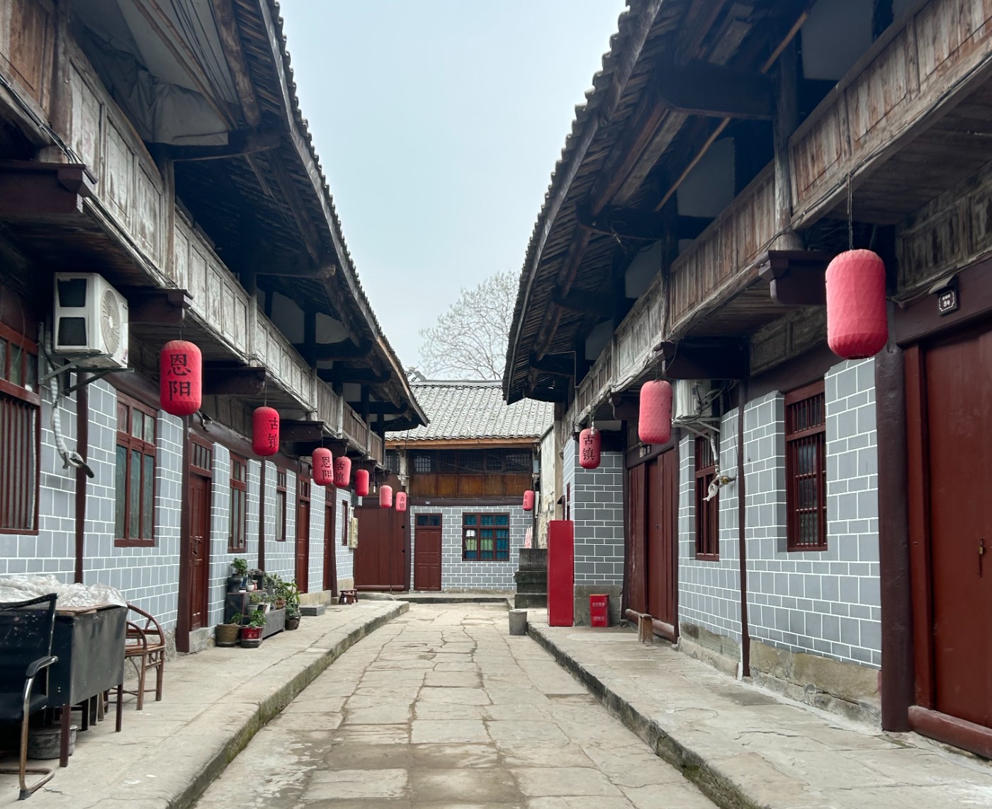 周末前往巴中恩阳古镇,本来是带外地朋友去感受一下巴中的历史底蕴与淳朴的川东北民居风貌。然而,眼前景象令人颇感意外与遗憾:不仅多处老建筑的大门被刷上了与整体环境极不协调的、过于鲜艳的“猪肝红”油漆,更有部分墙面被贴上了质感生硬、图案重复的“仿古”墙砖。这两种做法叠加,让本应古朴沧桑的老街立面,散发出一种突兀而廉价的“布景感”。