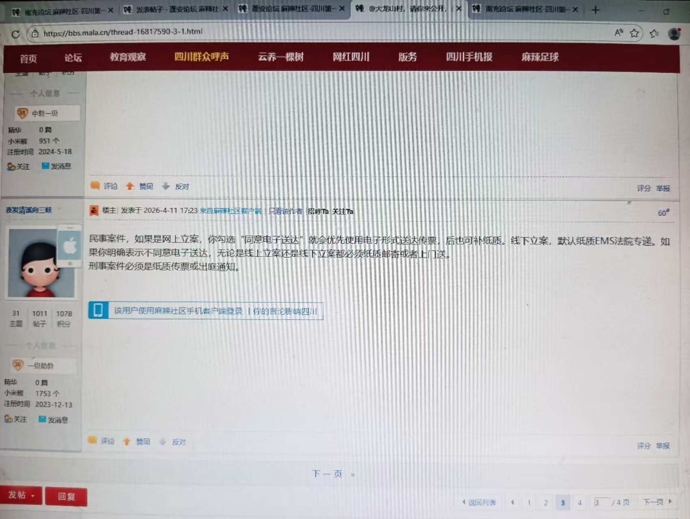 尊敬的南充市顺庆区公安局: 本人将于2026年4月13日到南充市中级人民法院,依法维权开庭。涉嫌不法分子企图阻止本人正常合法的民事活动。请给予保驾护航。保证本人合法的民事诉讼活动。同时不法分子已公开泄露开庭信息。企图拦截阻止本人开庭,达到“缺席”判决之目的。https://bbs.mala.cn/thread-16817590-1-1.html第58层,59层,60层。